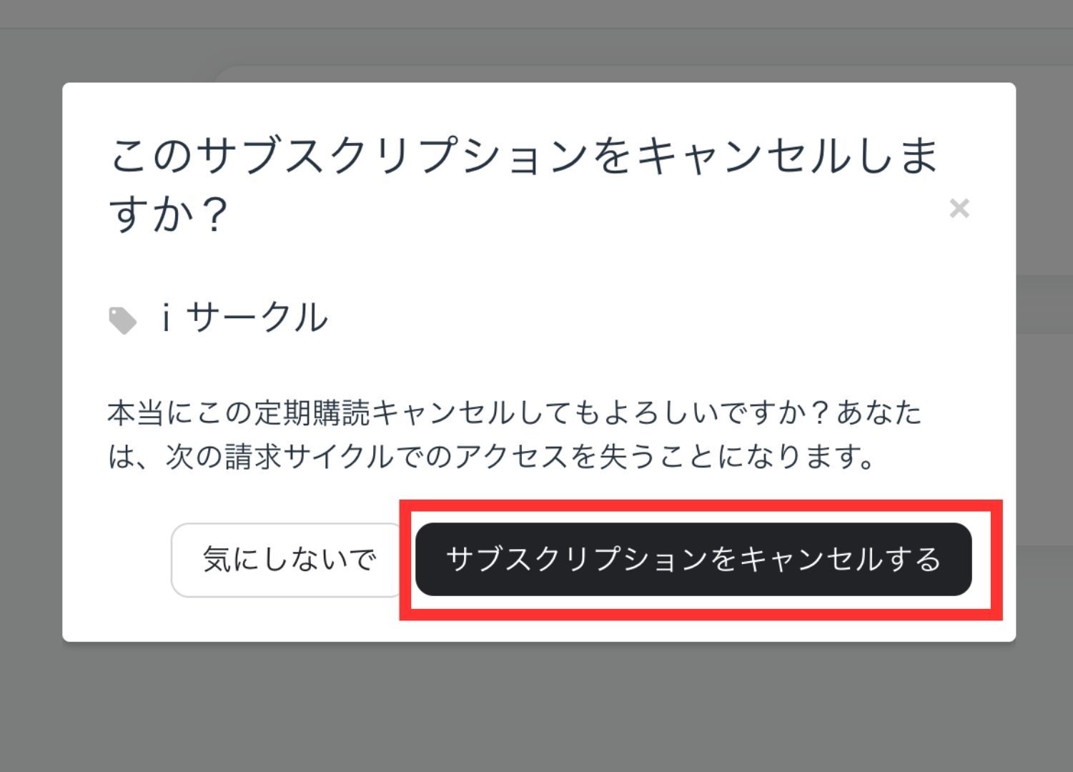 ④確認画面になるので、「サブスクリプションをキャンセル」をクリック